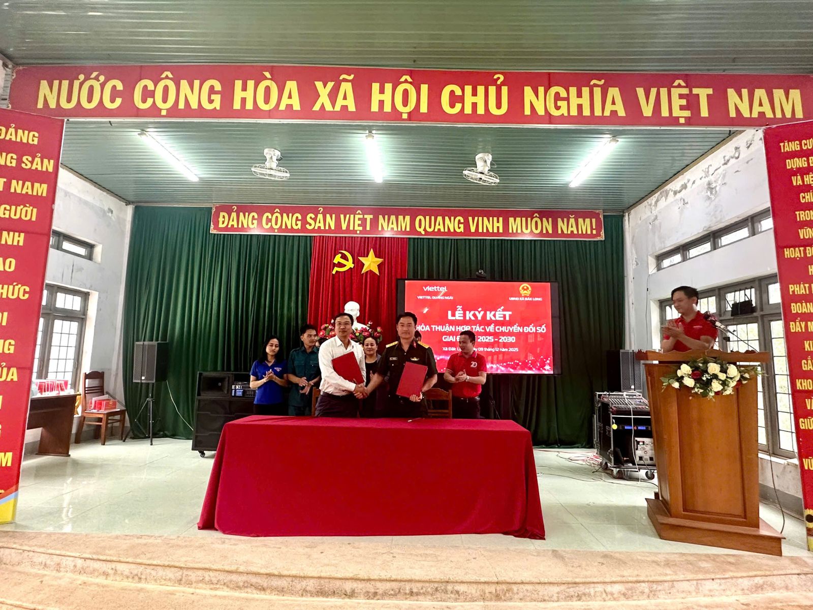 LỄ KÝ KẾT HỢP TÁC GIỮA UBND XÃ ĐĂK LONG VỚI VIETTEL QUẢNG NGÃI – CHI NHÁNH TẬP ĐOÀN CÔNG NGHIỆP - VIỄN THÔNG QUÂN ĐỘI TRONG VIỆC THÚC ĐẨY CHUYỂN ĐỔI SỐ TRÊN ĐỊA BÀN XÃ GIAI ĐOẠN 2025-2026