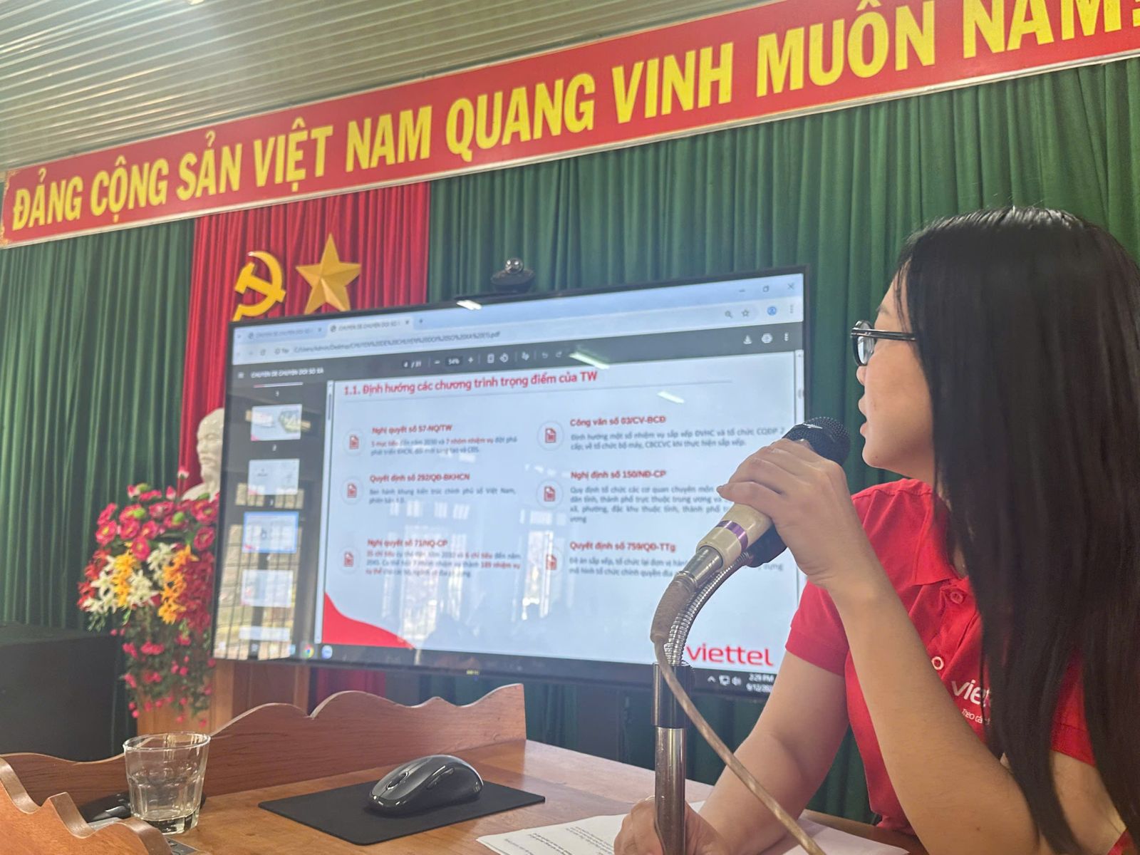 Đại diện các bộ phận chuyên môn của Viettel Quảng Ngãi trình bày các nội dung liên quan đến Lễ ký kết
